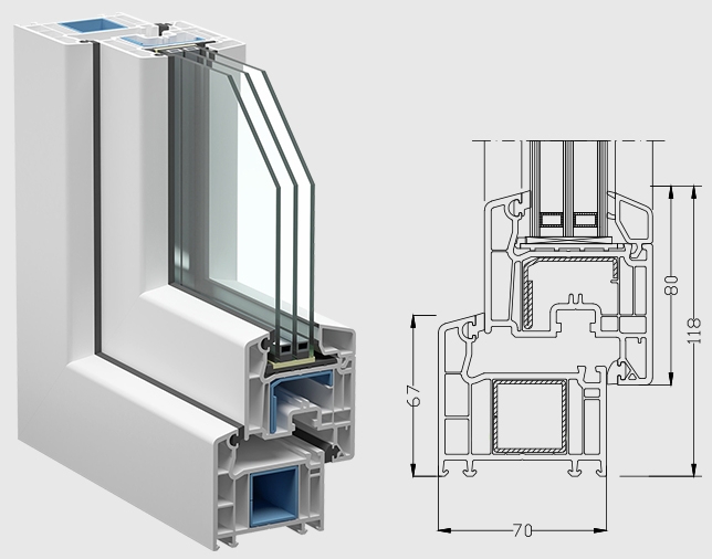5-камерная система с монтажной шириной 70мм 0.83 м2*К/Вт
