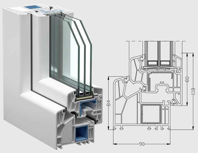 Шестикамерные системы с монтажной шириной 90 мм и теплоизоляционными вставками 1.03 м2*К/Вт